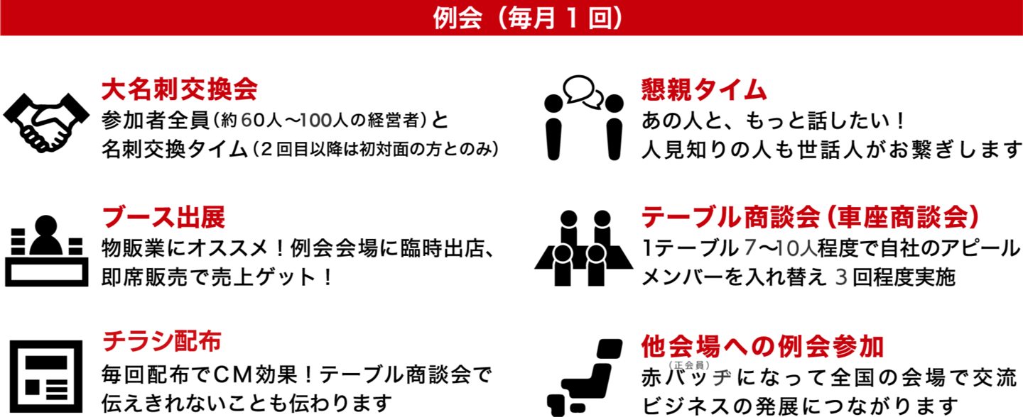 「本音で自社をPRし互いに商売(実利)に徹して売上を伸ばす」ことを第一の目的としています。